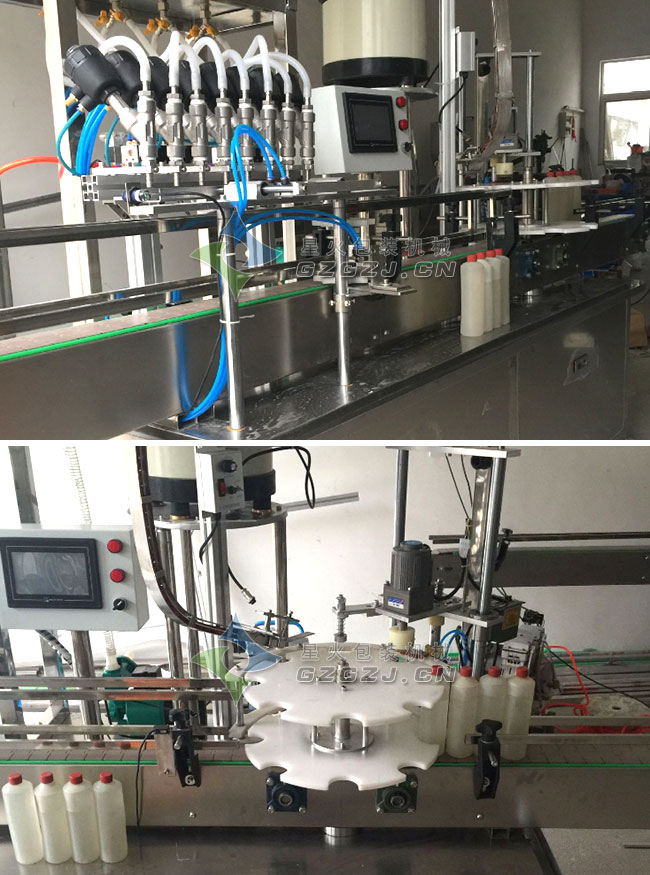 2、物料自吸式進(jìn)入灌裝機構(gòu),整機清洗、消毒方便。 3、口服液灌裝生產(chǎn)線缺瓶不灌裝,無滴漏。適用各種粘度液體灌裝。 4、振動盤自動理蓋,自動完成掛蓋旋蓋。 5、灌裝、旋蓋一體,經(jīng)濟(jì)實用占地小。磁力矩旋蓋頭,松、緊任意調(diào)節(jié)。 6、整機按GMP要求設(shè)計。