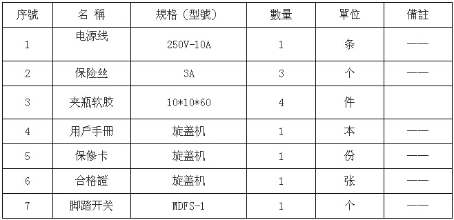 額定電壓 220V(±5V) 功率 220(W) 旋蓋高度 60-180(mm) 瓶蓋直徑 20-75(mm) 氣壓范圍 0.4-0.6(MPa) 包裝尺寸 530×470×760(㎜3) 凈重 68(kg) 1、XHZK-2型智能真空旋蓋機(jī)