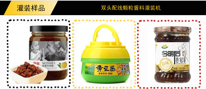 ![]() 2、臥式攪拌醬類灌裝機(jī)能使醬和油能夠充分混合灌裝。 3、雙頭同時(shí)灌裝,速度快、效率高。 4、臥式攪拌蘑菇醬灌裝機(jī)針對(duì)香菇醬、火鍋底料、豆豉醬等醬料設(shè)計(jì),專業(yè),性能更穩(wěn)定 灌裝范圍: 50~500ml