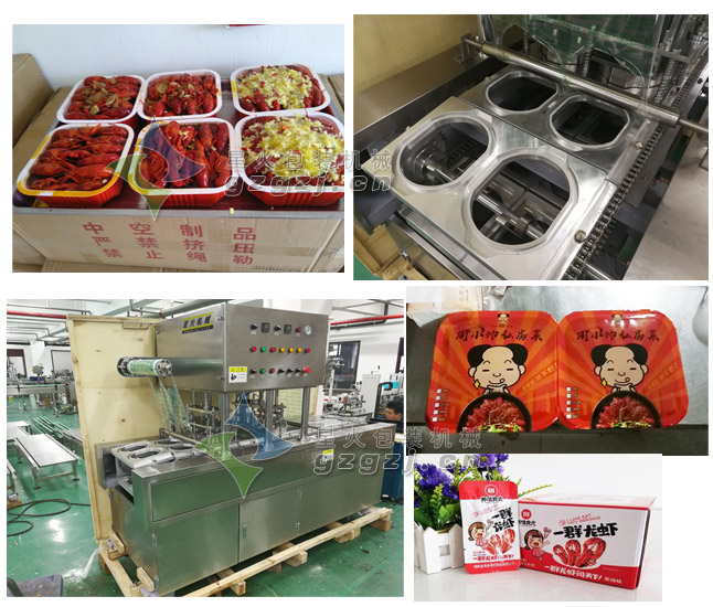 麻辣小龍蝦氣調(diào)包裝機(jī)-封盒鎖鮮一步到位 小龍蝦是盱於的特色美食產(chǎn)品;如崔班長(zhǎng)、周小廚等食品廠采用龍蝦氣調(diào)包裝封口機(jī)對(duì)其進(jìn)行鎖鮮包裝,然后將熟食海鮮網(wǎng)銷至全國(guó);其中像周小廚食品就與星火包裝機(jī)械采購(gòu)了熟食盒裝包裝機(jī)